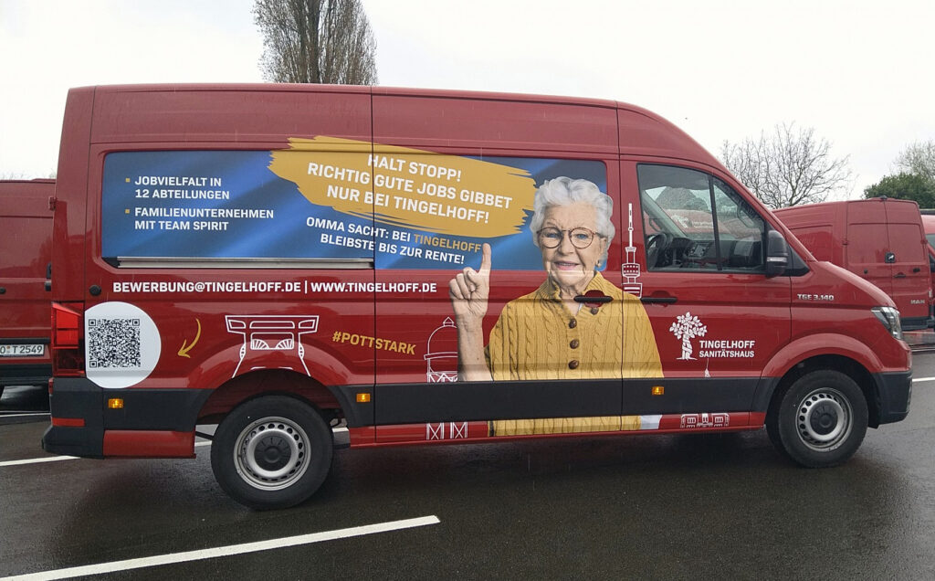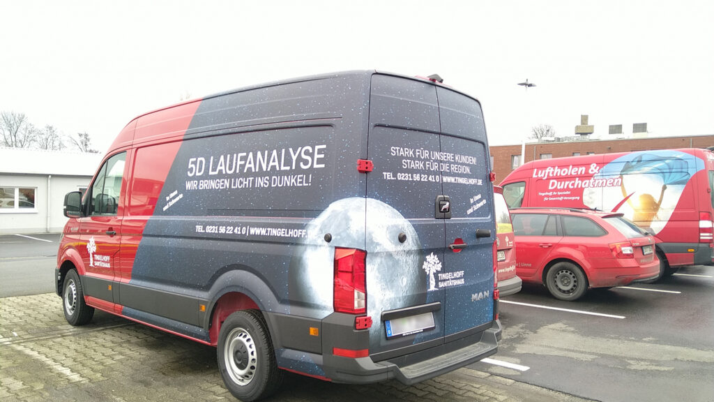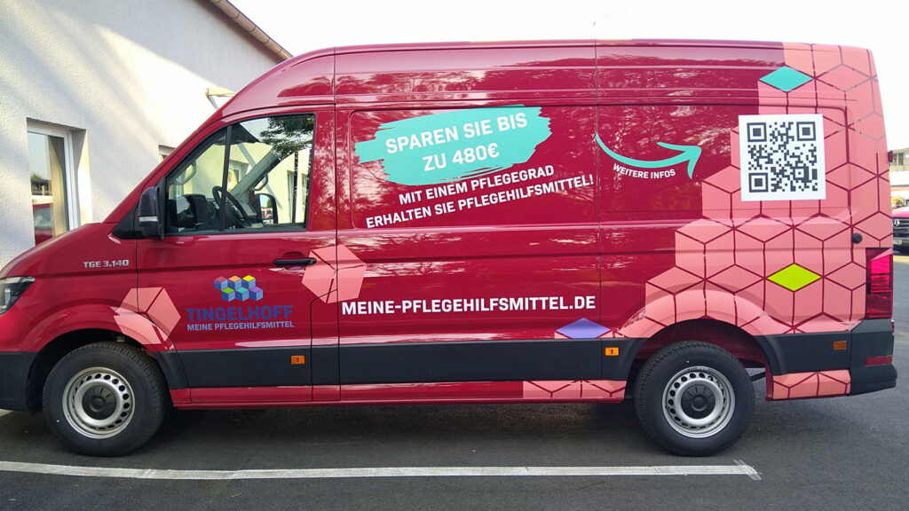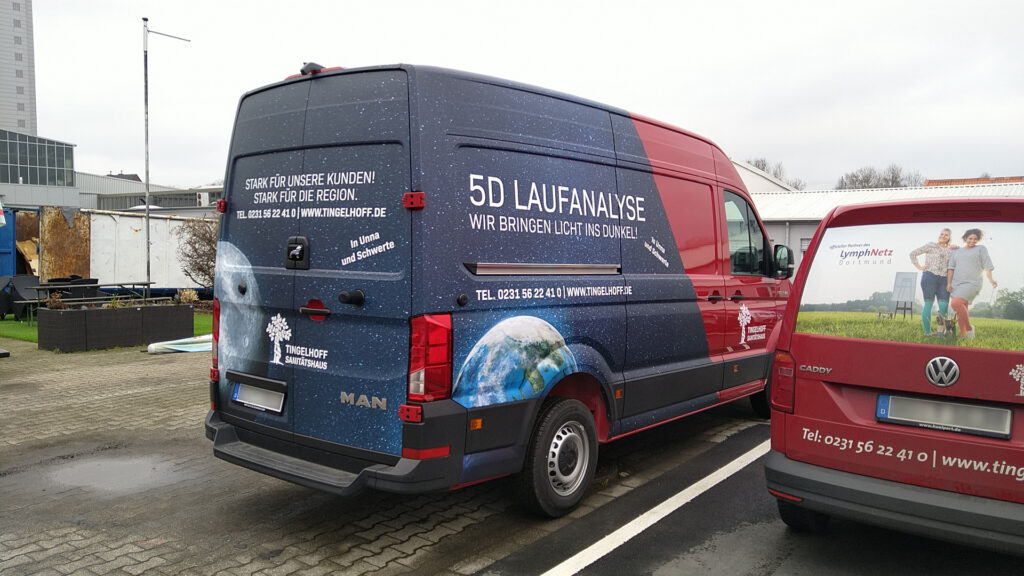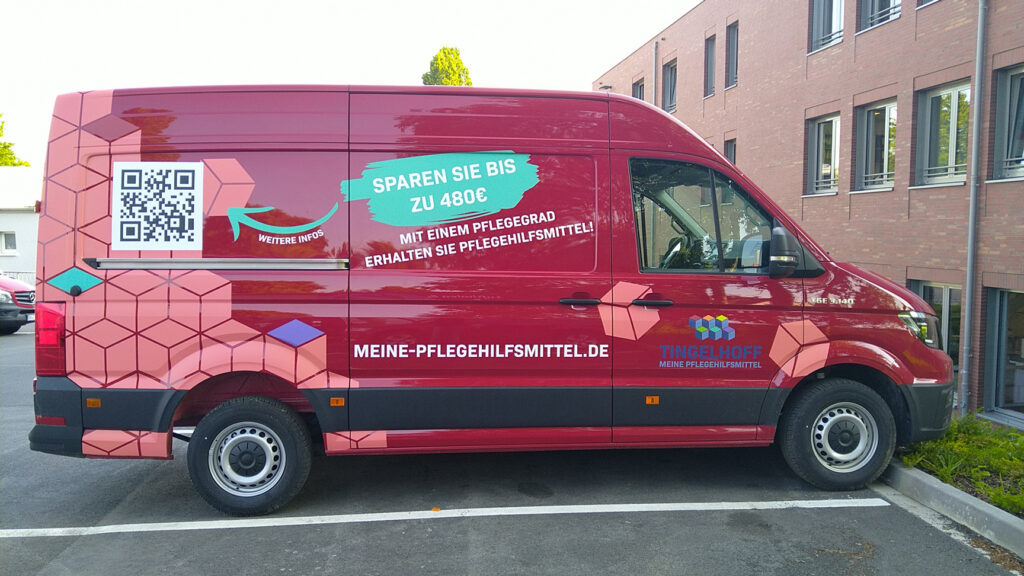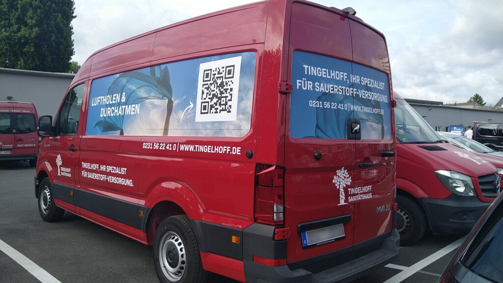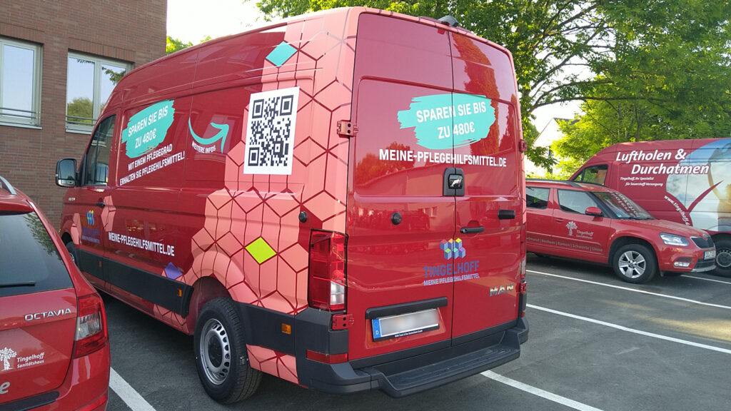 Für das Sanitätshaus Tingelhoff GmbH durften wir eine komplette Flottenbeschriftung umsetzen. Dabei wurden Fahrzeuge in unterschiedlichen Größen mit hochwertigen Voll- und Teilfolierungen gestaltet. Das moderne Design sorgt nicht nur für eine starke Markenpräsenz, sondern auch für eine professionelle Außenwirkung. Dank langlebiger Hochleistungsfolien bleibt die Beklebung auch bei täglicher Nutzung widerstandsfähig und farbintensiv.